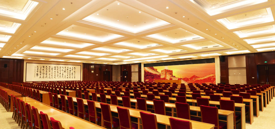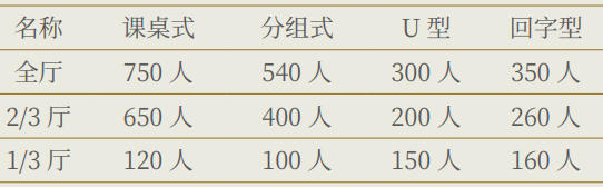 位于主楼五层 / 综合楼三层,长约 46.9m,宽约 32m,高约 8m,面积约 1500 ㎡,可根据需要做隔断布局,支持课桌式、分组式、U 型、回字型等各类桌型,适用于展出、展览、团建活动、演出、婚宴等活动开展。